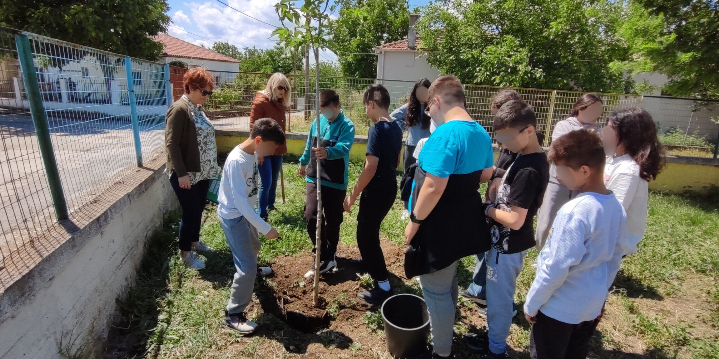 έξι δενδρυλλίων που προσφέρθηκαν στο σχολείο, συμβάλλοντας έμπρακτα στην